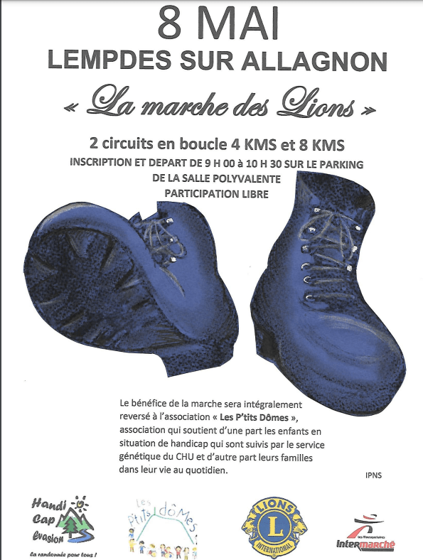 Le Lions Club Allagnon Val D’Allier organise une marche ce dimanche 08 Mai dont les bénéfices seront intégralement reversés à notre association « Les P’tits Dômes »!