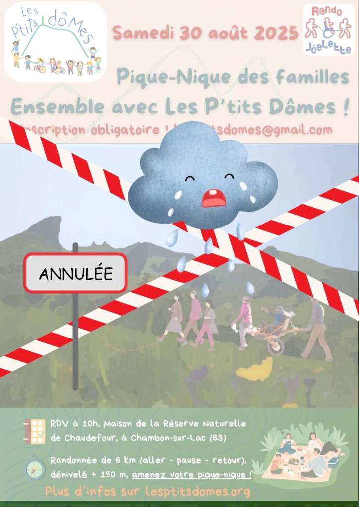 Nous avions prévu le 30/08/2025 une petite rando et un pique-nique dans la vallée de Chaudefour, accessible en joëlette pour les enfants en fauteuil.